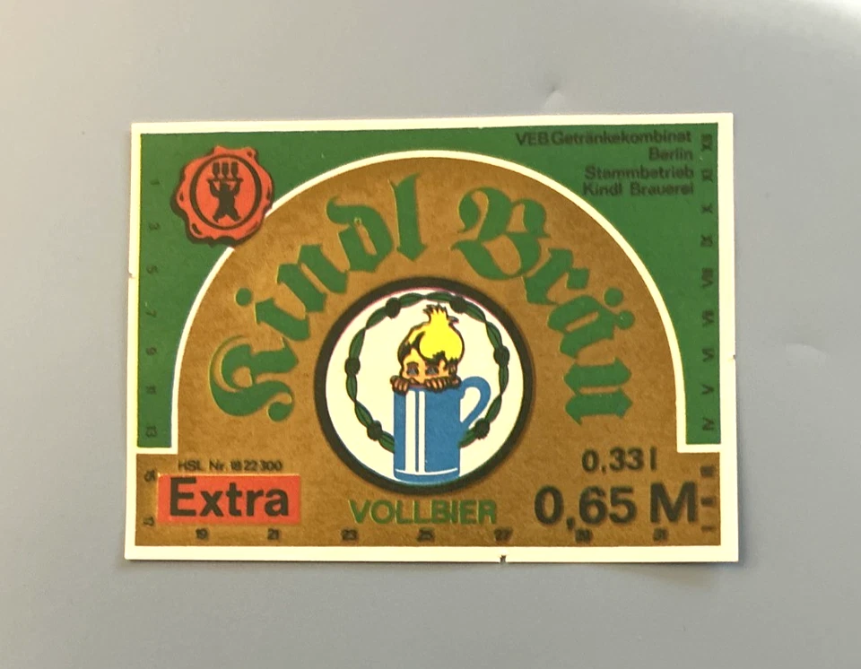 Altes Bieretikett - Beer Label , DDR-VEB KINDL BRAUEREI Extra , Berlin #121#