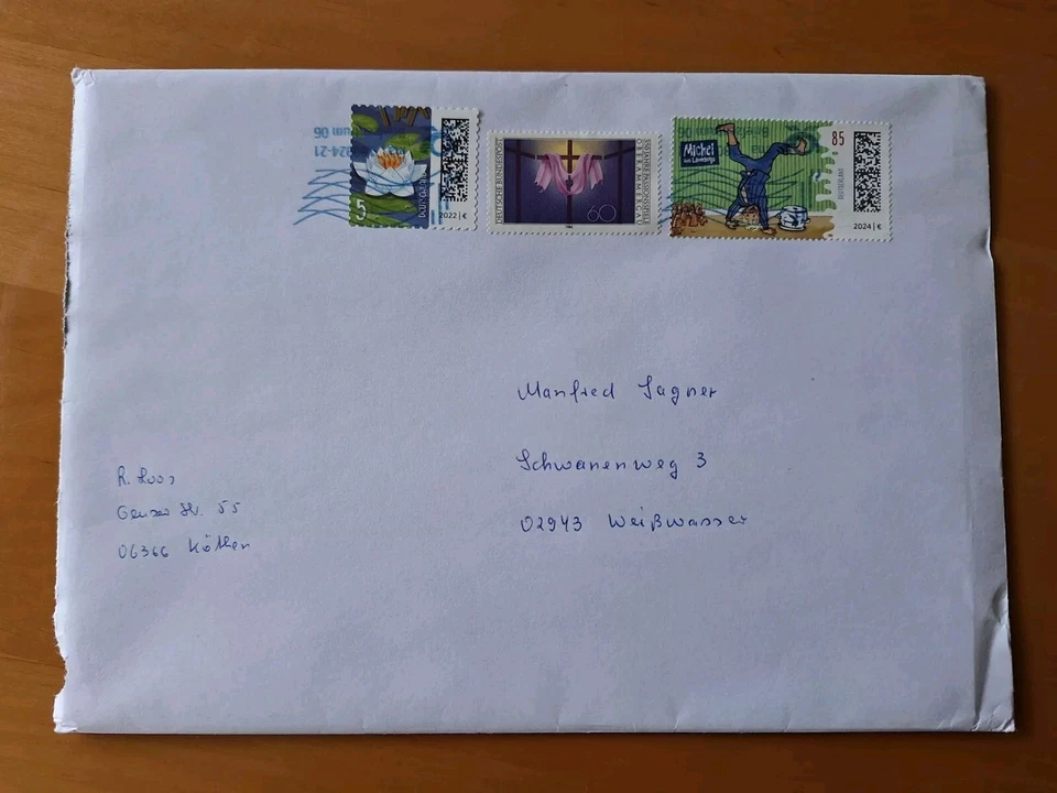 Deutschland Brief A5 mit aufgeklebten Briefmarken und Stempel