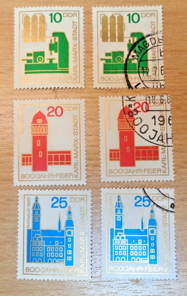 DDR 1965 2 X SATZ 800 JAHRE KARL MARX STADT(CHEMNITZ) GESTEMPELT
