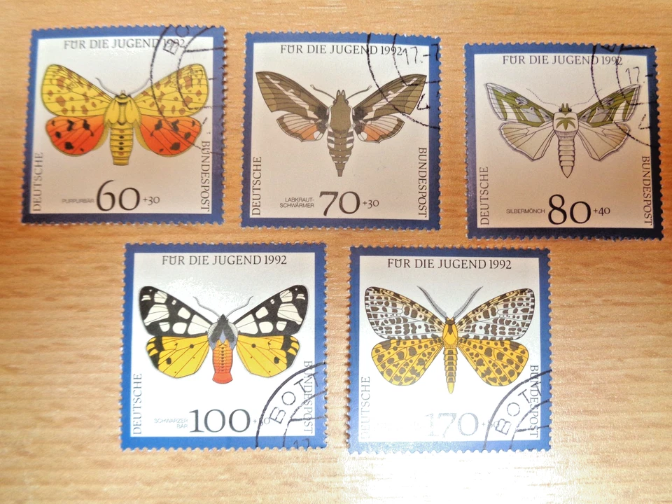 BUND 1992 SATZ FÜR DIE JUGEND GEFÄHRDETE HEIMISCHE NACHTFALTER GESTEMPELT/GUMMI