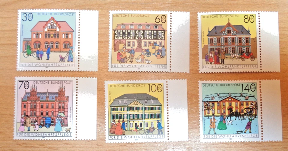 BUND 1991 SATZ FÜR DIE WOHLFAHRT HISTORISCHE POSTHÄUSER POSTFRISCH/RAND