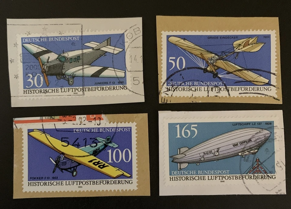 1522-1525 Briefmarken BRD 1991 Hist.Luftpostbeförderung Satz, gest. auf Papier