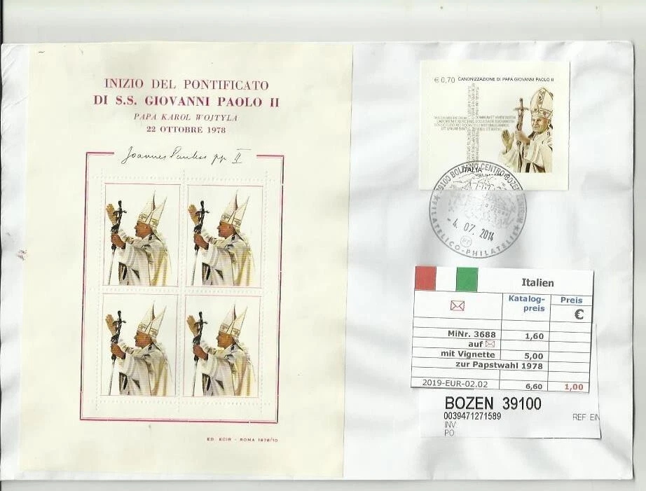 Italien MiNr. 3688 und Vignette zur Papstwahl 1978 auf Brief, gestempelt