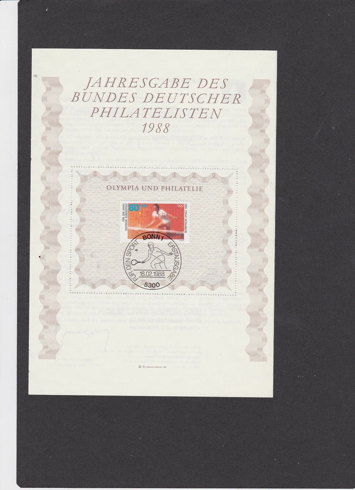 Jahresgabe 1 9 8 8 " Bund Deutscher Philatelisten " aus der Bundesdruckerei