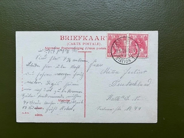 Briefmarken,Niederlande, Postkarte 1909, Motiv Brugstraat, Rosendaal Station 1
