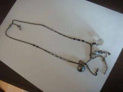 Halskette aus Metallglieder und vielen Perlen: groß + klein