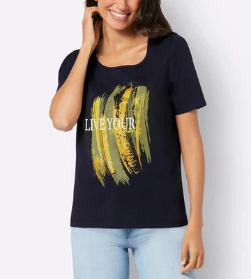 Damen Shirt Oberteil Rundhals Kurzarm Jersey schwarz limone Gr. 54