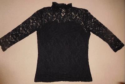 T-Shirt Shirt Spitzenshirt, Größe M, schwarz, 3/4 Arm, Basic, Stretch