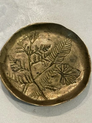 Dekorative Messingschale / Messingteller mit Pflanzenrelief