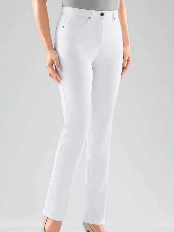 Damen Schlupfhose Stretch Slim Fit Bengalin Weiss Gr. 27 (54) Neu