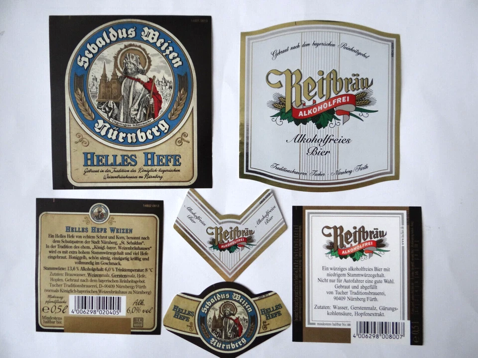 2 versch. Bier-Etiketten - Sebaldus und Reitbräu der Tucher Bräu, Bayern,
