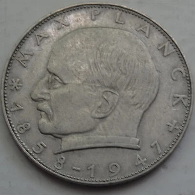 2 DM Bundesrepublik Deutschland Münze Max Planck, 1970, Prägung "J"