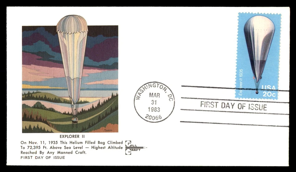 Mayfairstamps US FDC 1983 Washington DC explorer II hot air balloon Gill Craft F