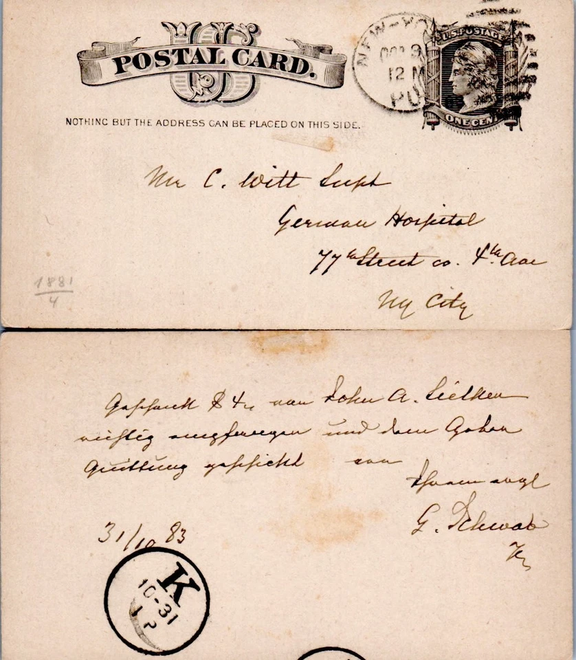 USA POSTAL STATIONERY POSTAL CARD ONE CENT 1894 NEW YORK (A6/66)