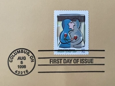 32c Organ Donation First Day Of Issue Stamp On Souvenir Page, Columbus OH 1998