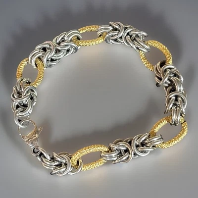 Steel By Design Byzantine Stainless Steel & Gold Tone Link Bracelet Sz 7