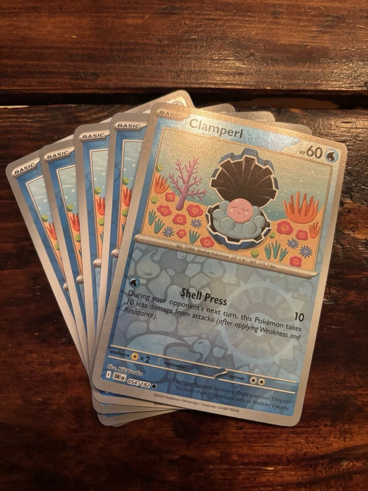 (5) Pokemon TCG Clamperl 054/182 Reverse Holo LOT! Destined Rivals
