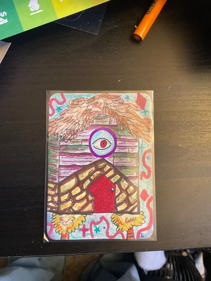 ACEO Art Card Original the Chicken House 2.5in x 3.5in SpaceFrogCrafts