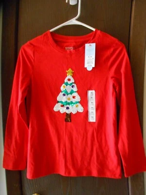 NWT GIRLS CAT & JACK LONG SLEEVE RED FLIP SEQUINS CHRISTMAS T-SHIRT SIZE XL(14)