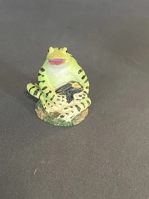 Frog Figurine Collectible Miniature holding a Log 1.5" x 1" - Excellent