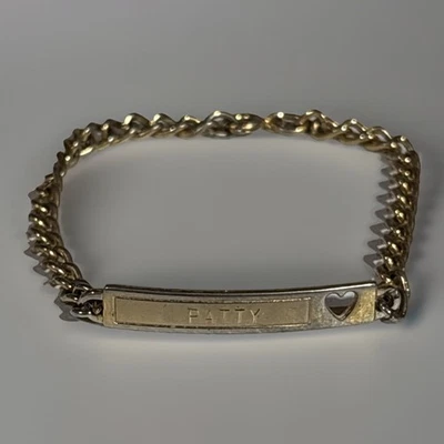 Vintage Goldtone ID Bracelet Engraved “Patty” “Love Gene” Signed Spidel