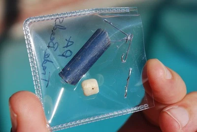 PAIR OF LARGE AUTHENTIC PENNSYLVANIA BLUE AND WHITE TRADE BEADS Indian Arrowhead