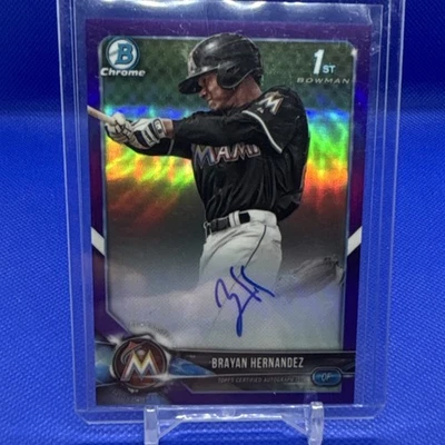 2018 Bowman Chrome Brayan Hernandez Purple Refractor 1st Auto Marlins /250