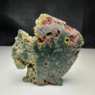 Natural Crystal Mineral Specimen.GRAPE Agate. Hand-carved FISH.Statue.CM
