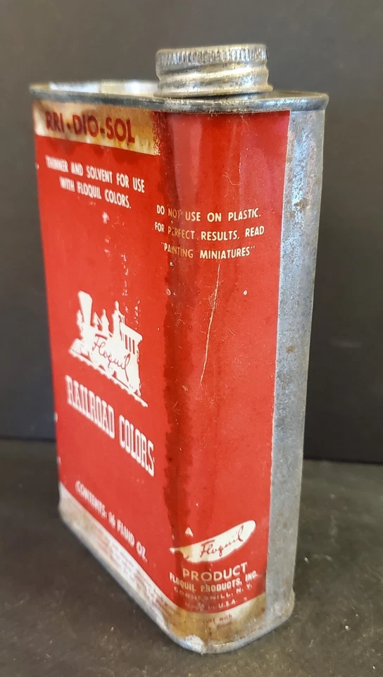 Vintage FLOQUIL RAILROAD COLORS Paint Solvent 16oz can Empty RRI-DIO-SOL
