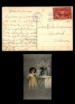Mayfairstamps US 1913 Des Moines to Madrid Child Dove Postcard aaw_61237