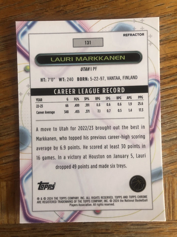2024 topps chrome cosmic refractor Lauri Markkanen #131 Utah Jazz