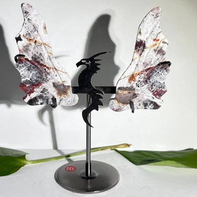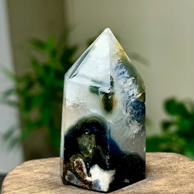 36GNatural black flower agate ObeliskQuartz Crystal Tower Healing