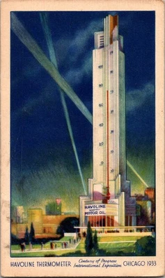 Dr Jim Stamps Postcard Havoline Thermometer Century Progress 1933 corner damage