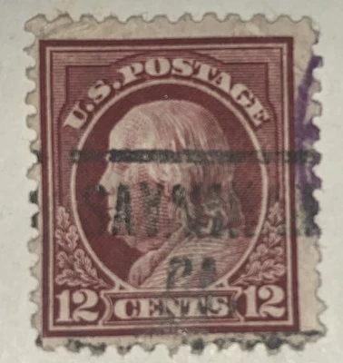 1917 Benjamin Franklin 12 Cent Stamp Red Brown