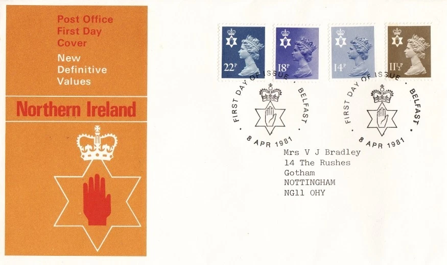 1981 11½p, 14p, 18p & 22p Northern Ireland Definitive - Belfast H/S FDC