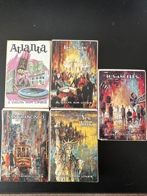 Lot of 5 vintage delta airlines playing cards. Only Atlanta Is Sealed