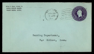 Mayfairstamps US IA State Bank West Bend to Des Moines Cover aaw_64695