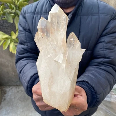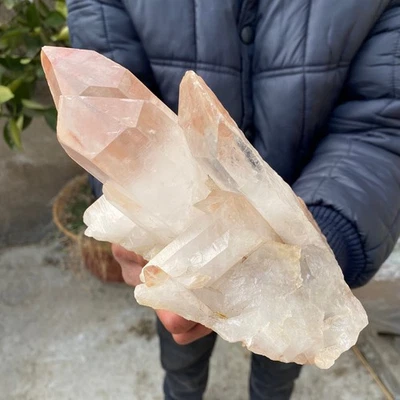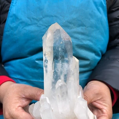 1386g Clear Transparent Green Ghost Quartz Crystal Cluster Specimen