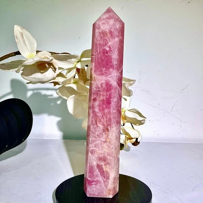 2.64LB Natural Pink Rose Quartz Hand cavend Crystal Pillar Reiki