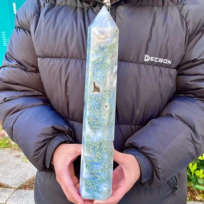 4.76LB Natural Water Grass Agate Wide Column Obelisk Quartz Crystal Pillar