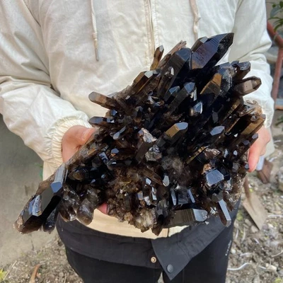 12.8lb Natural Smoky BLACK Quartz Crystal Cluster Raw Mineral Specimen
