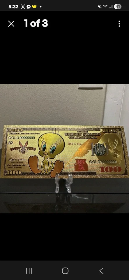 24k Gold Foil Plated Bugs Bunny Looney Tunes Banknote Warner Bros Collectible