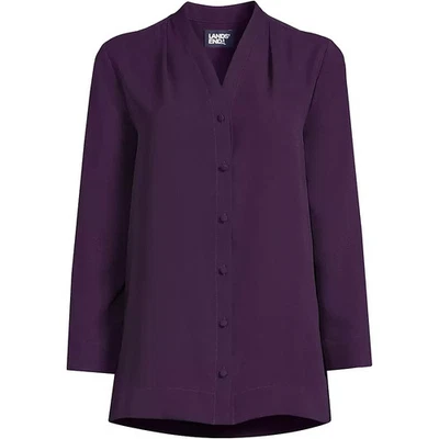 Land's End Plus Size 20W 2X Long Sleeve Vneck Crepe Tunic Purple Blackberry