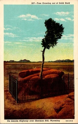 Dr Jim Stamps Postcard Tree Growing From Rock Lincoln Highway Sherman Hill WY