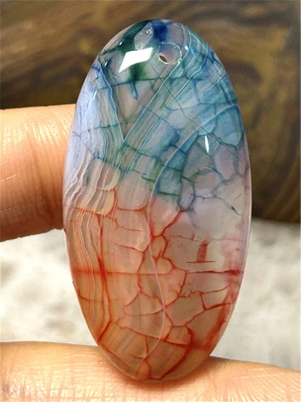 KU71193 42x22x7mm Colorful Fire Dragon Veins Agate Oval Pendant Bead