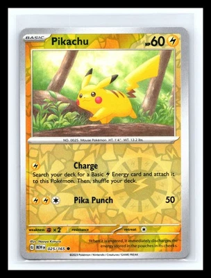 💥 2023 Near Mint Pokemon Pikachu 025/165 Reverse Scarlet Violet 151 English