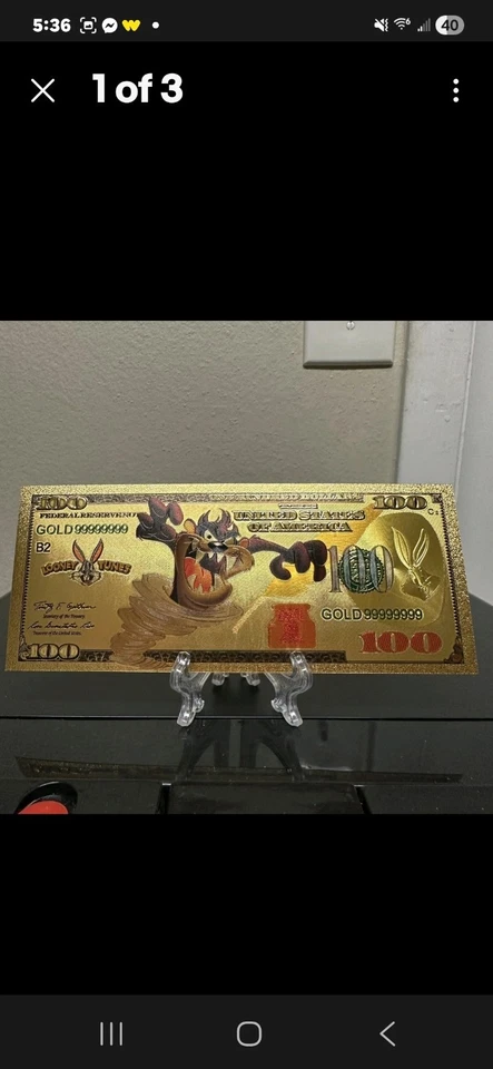 24k Gold Foil Plated Tasmanian Devil Looney Tunes Banknote Warner Bros.