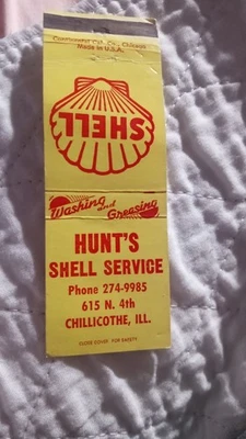 Shell Oil Station Matchbook cover.. Hunt's Shell, 615 N 4,th. Chilliicothe IL