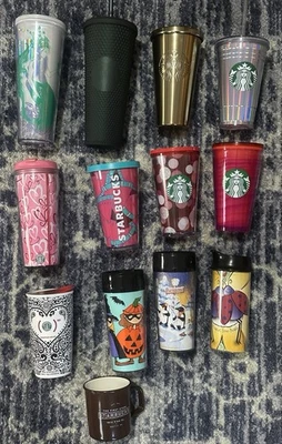 Lot Of 13 Starbucks Tumblers Cups Mug Valentines Halloween Christmas Adler