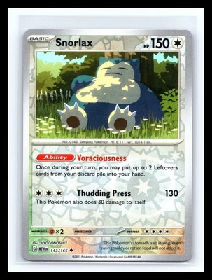 💥 2023 Pokemon Snorlax 143/165 Reverse Holo Scarlet Violet 151 English